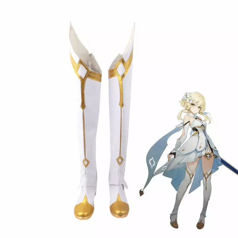 Features: This cosplay shoes is based on the character Traveler Female from  Genshin Impact. It can be used in cosplay conventions and Halloween party.