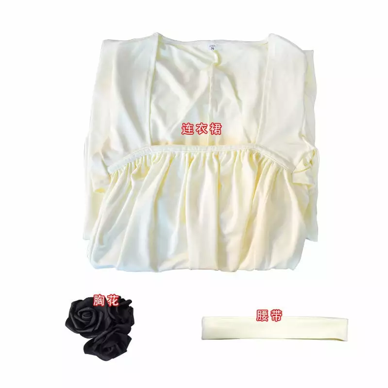 Included: Dress, corsage, hat, necklace, earrings, gloves